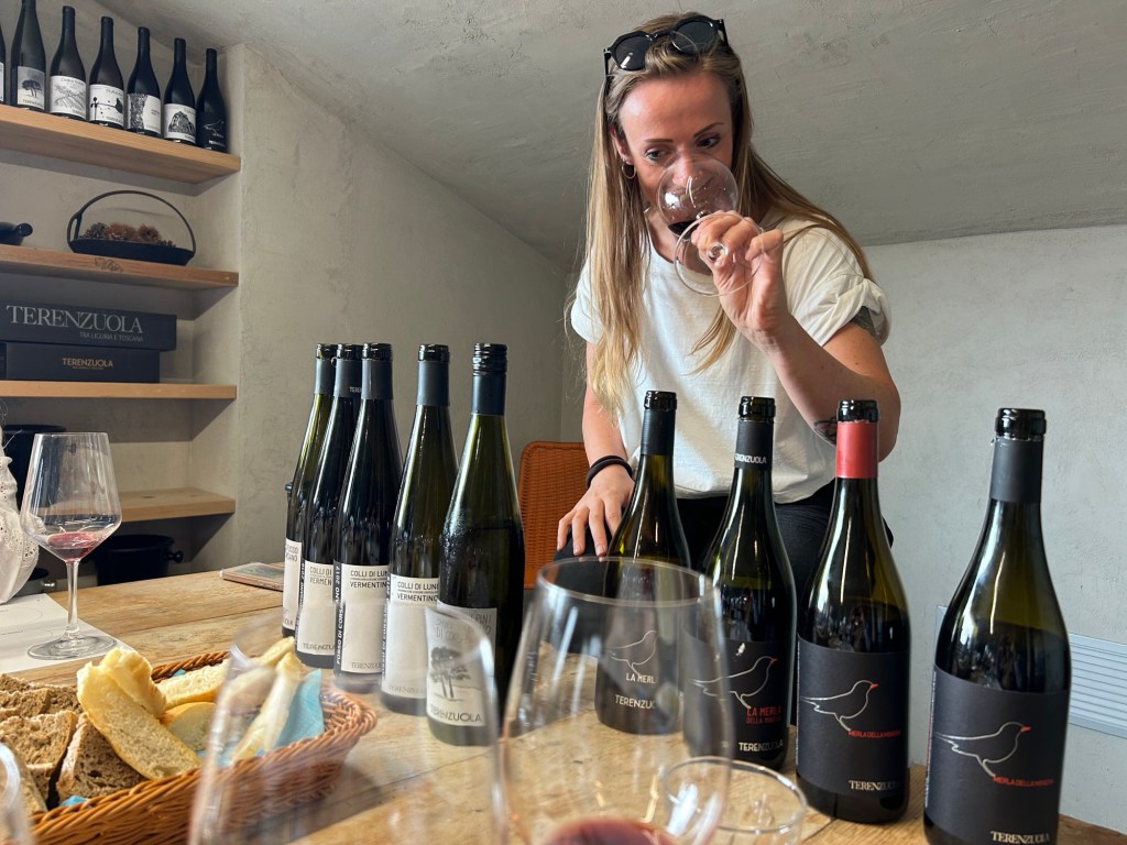 De Fosdinovo-heuvel in Colli di Luni is bijzonder vanwege de complexe bodems, gevormd door Ligurisch zand en Toscaanse klei, met de Apuaanse Alpen van calciumcarbonaat ertussen. Om het beste “terroir” te vinden, werden drie zones onderzocht: uitlopers, hellingen en de top. De uitloperbodems, rijk aan antraciet en fossielen, geven Vermentino Bianco en Nero hun finesse en kracht. Deze unieke combinatie van bodem en wijngaard versterkt de kenmerkende eigenschappen van de wijnen uit dit gebied.