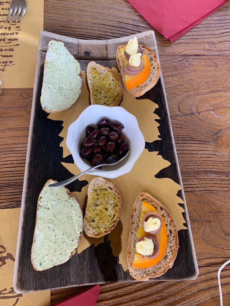 Je kan ook alleen de winkel bezoeken. Even op je beurt wachten en proeven van de lekkere marmelades, tapenades en wijnen. Bij de ingang kan je je meegenomen flessen laten vullen. De wijn komt uit een soort slang van een benzinepomp! Ik vond die met 100% vermentino een prima wijntje voor tussendoor. Maar wil je echt genieten dan kan je je bezoek dus uitbreiden en een rondleiding of een wijnproeverij reserveren. Je krijgt er dan heerlijk focaccia brood bij en ze serveren dan de duurdere wijnen. Prachtige locatie met enthousiaste mensen.