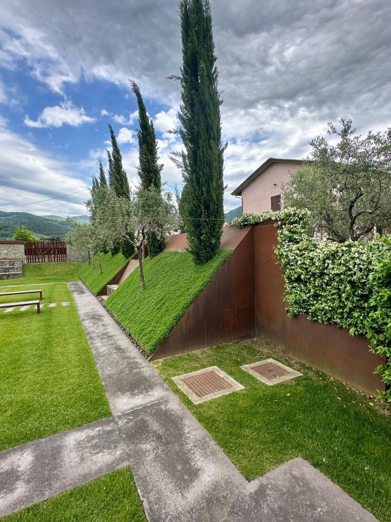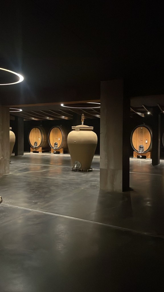 De prachtige, moderne wijnkelders zijn zorgvuldig ontworpen binnen de Italiaanse designtraditie, waarbij functionaliteit en esthetiek samenkomen in een natuurlijk landschap van wijngaarden en stenen muurtjes. Het is een plek waar kunst en natuur in dialoog zijn en waar elke hoek en elk detail met zorg is vormgegeven.